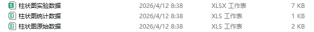 print('3. 柱状图实验数据.xlsx:分工作表存储统计值和原始数据(便于核对)')