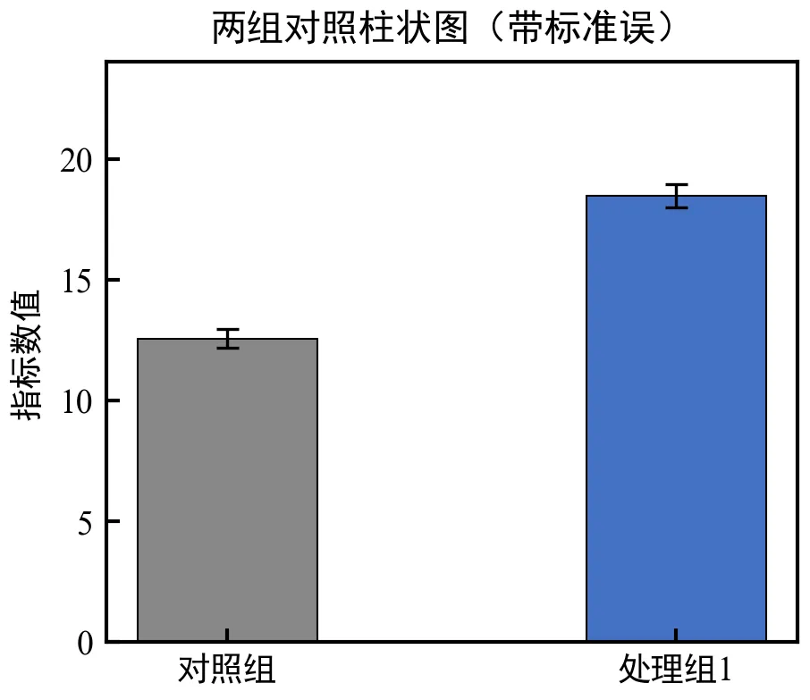 该程序独立可执行——两组基础柱状图绘制,可读取统计数据,绘制两组对照柱状图,添加标准误误差棒,应用学术样式。该图表适用于两组实验对比,快速展示统计结果。