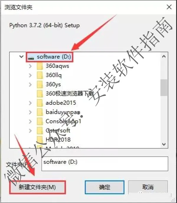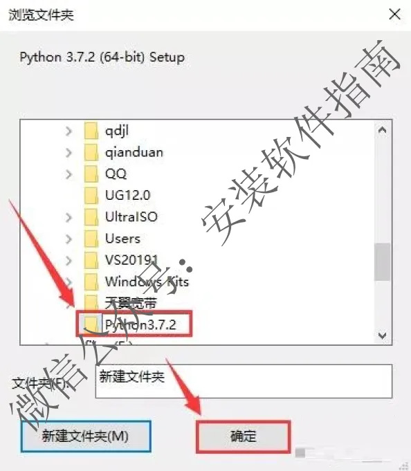 9、将文件夹命名为【Python3.7.2】,然后点【确定】