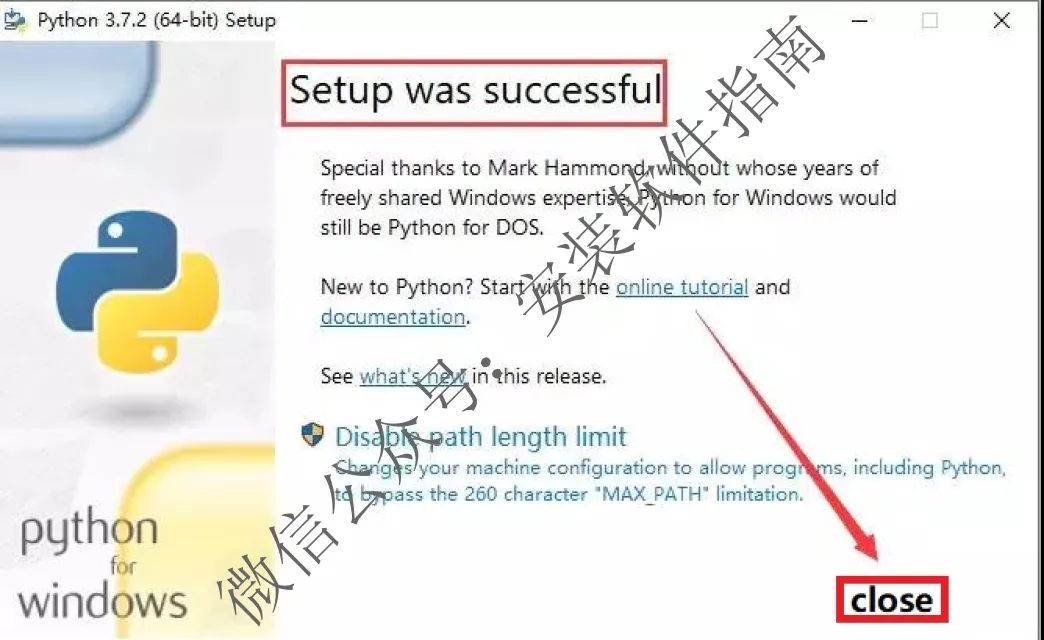 12、安装成功点close