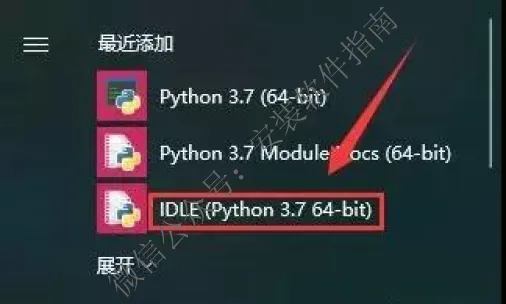 13、通过开始菜单,找到【IDLE】程序,将其拖到桌面产生快捷图标