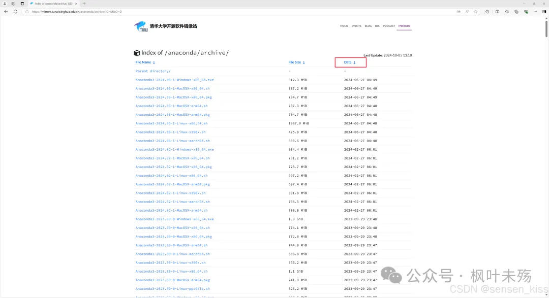 网站地址:Index of /anaconda/archive/ | 清华大学开源软件镜像站 | Tsinghua Open Source Mirror