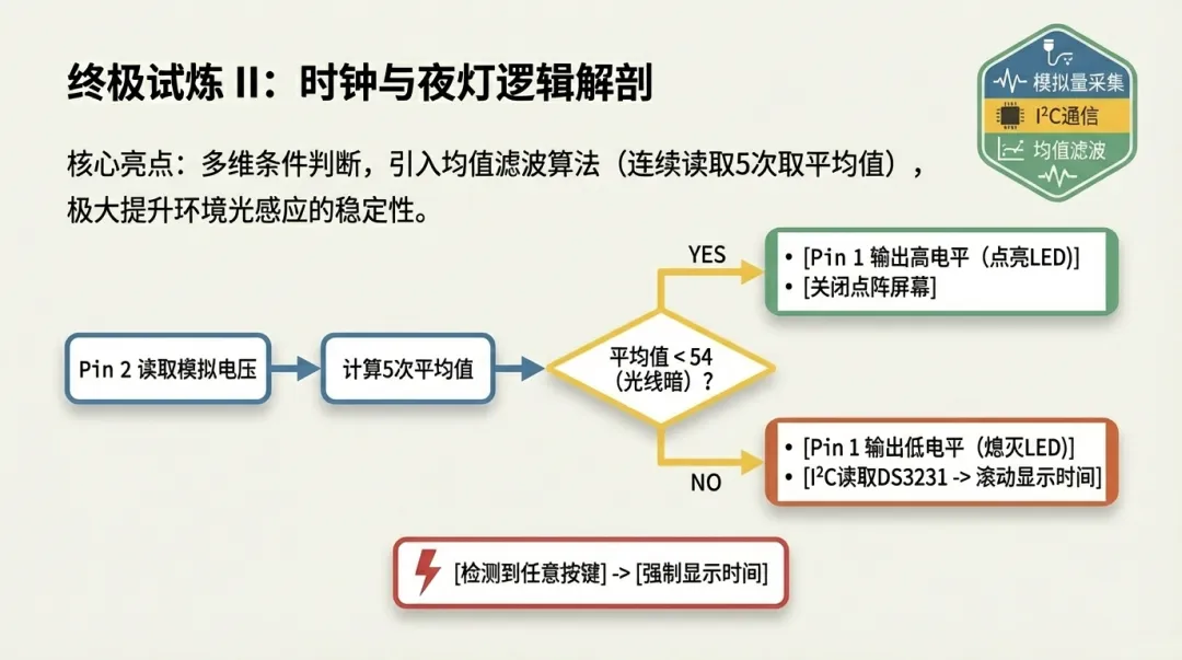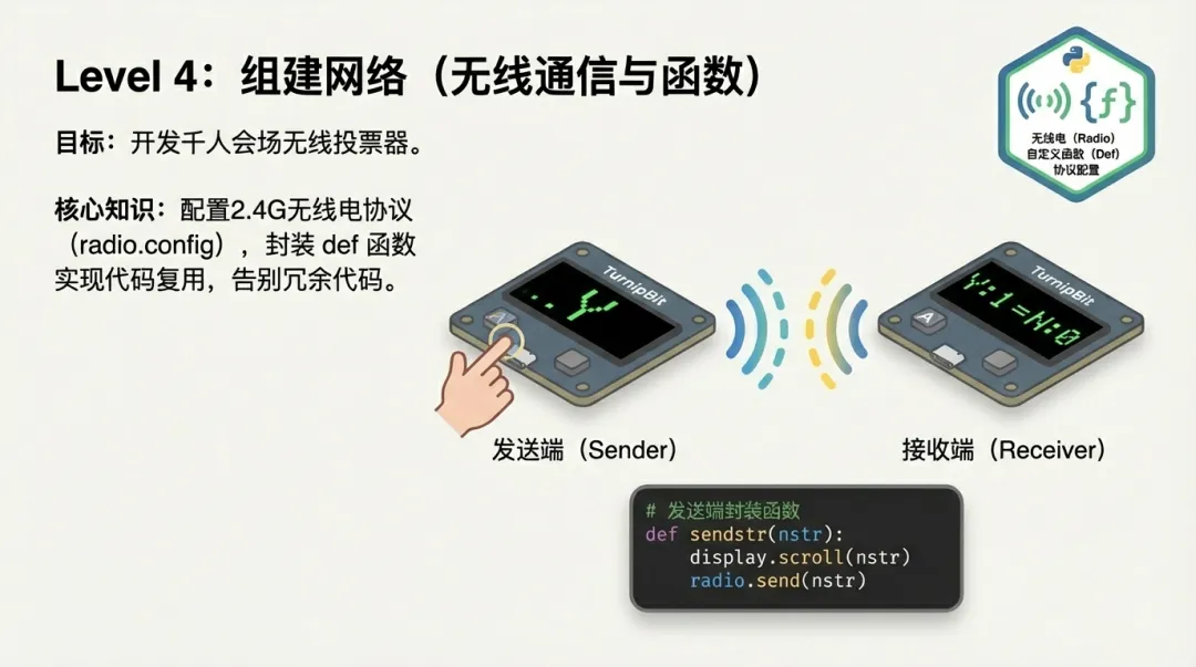 编程不是纸上谈兵,这本书的实战场景,直接覆盖物联网入门的核心知识点,每一个都好玩又实用:人机交互:用5×5 LED点阵,结合“视觉暂留”原理,做出滚动字符、逐帧动画,娃做完能炫耀一整天;无线通信:做“无线投票器”项目,手把手教娃配置2.4GHz频段,搞懂数据包怎么发、怎么收;信号处理:用光敏电阻测环境光,设置阈值实现“光控开关”;做“储钱罐”时,还会教娃用“软件防抖”算法,解决触片误触发的问题,细节拉满;面向对象编程:通过DS3231实时时钟项目,讲透I2C总线原理,教娃把时钟功能封装成Python类,提前接触高阶编程思维。4. 终极实战:亲手做“避障车”,吃透机电一体化!