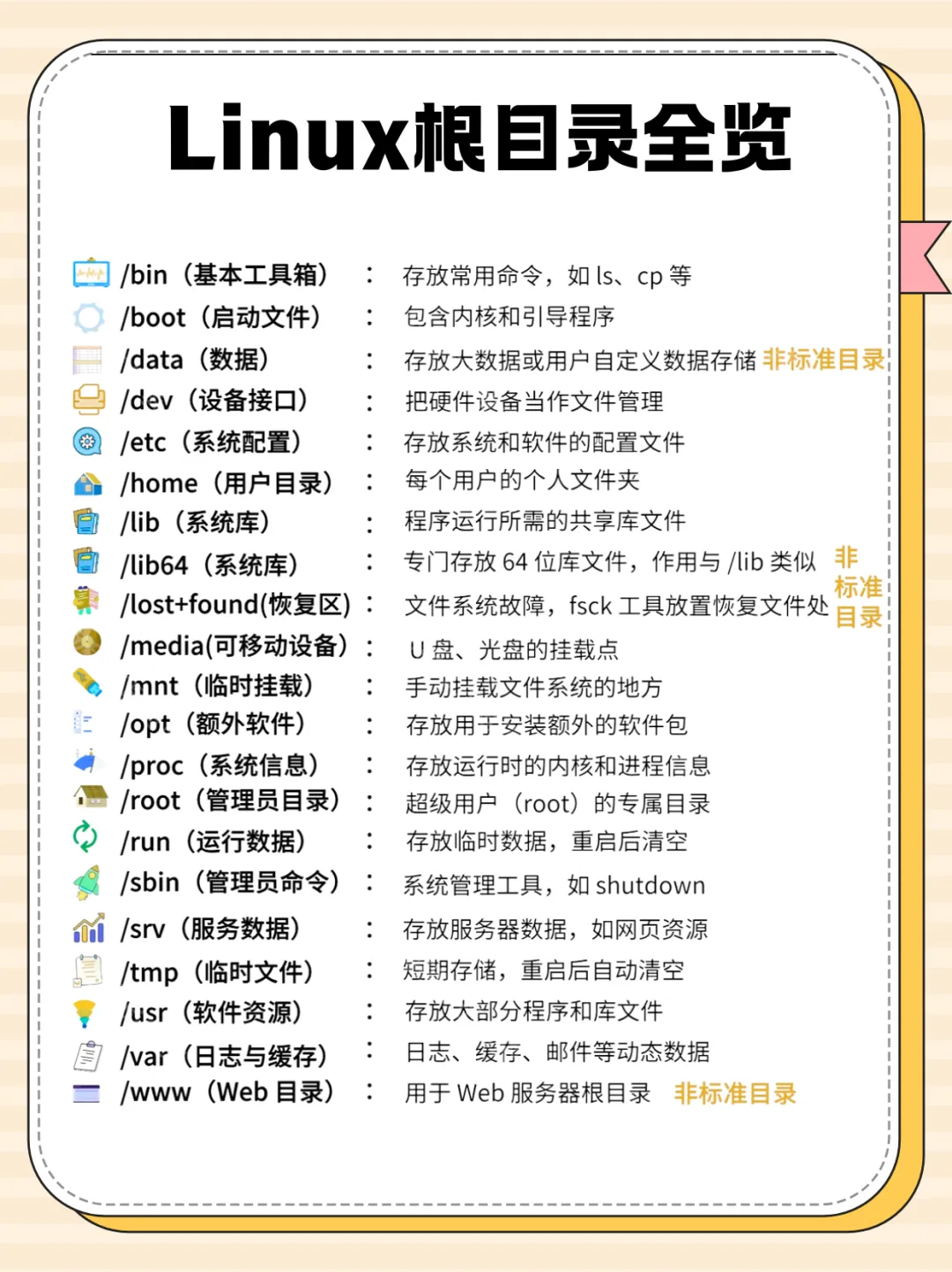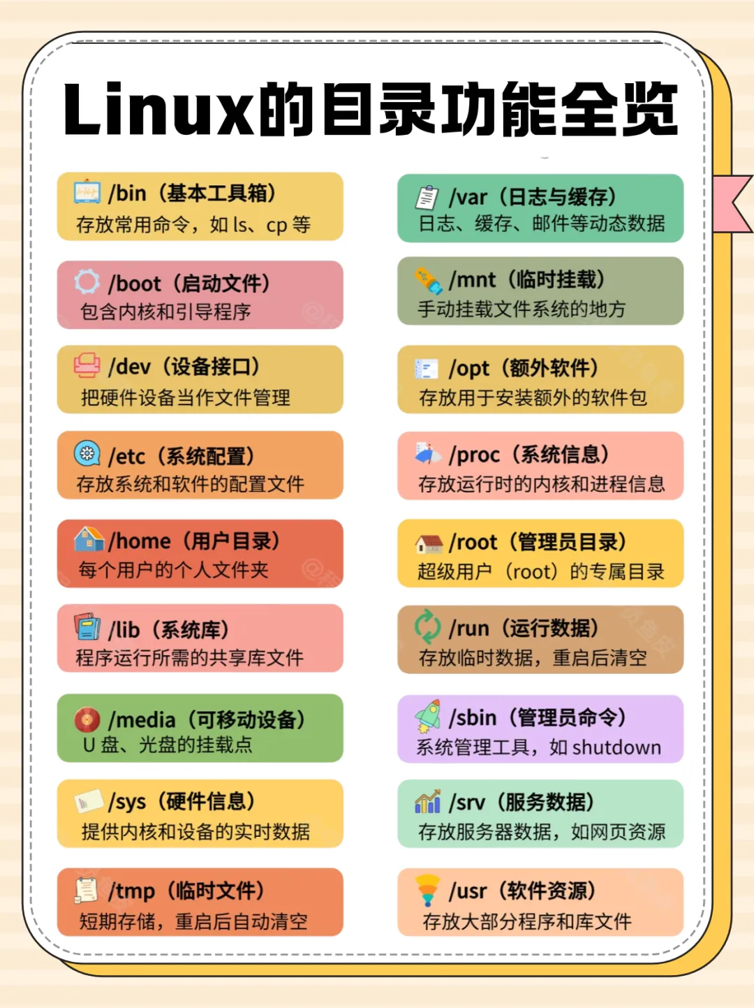 别慌!今天阿啾用一张超全图解,把每个目录的功能,一次性给你讲明白,就你是新手也能秒懂 Linux 目录结构!✅