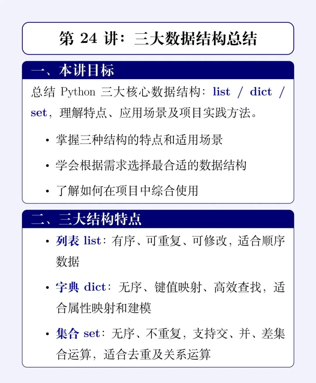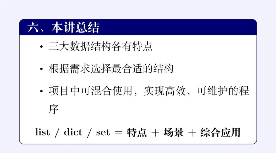 导语:一路走来,我们已经把 Python 中最核心的三个数据“收纳箱”——列表(List)、字典(Dict)和集合(Set)全都学完了。