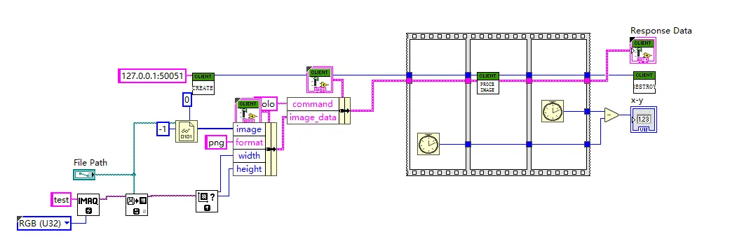 预告:现在已经解决了数据传递问题。在此基础上写了Python作为图像处理的服务器程序。负责进行Yolo26推理,PaddleOCR识别,图像匹配等功能,Labview作为客户端负责发送指令和图像数据并接收服务端的处理结果。