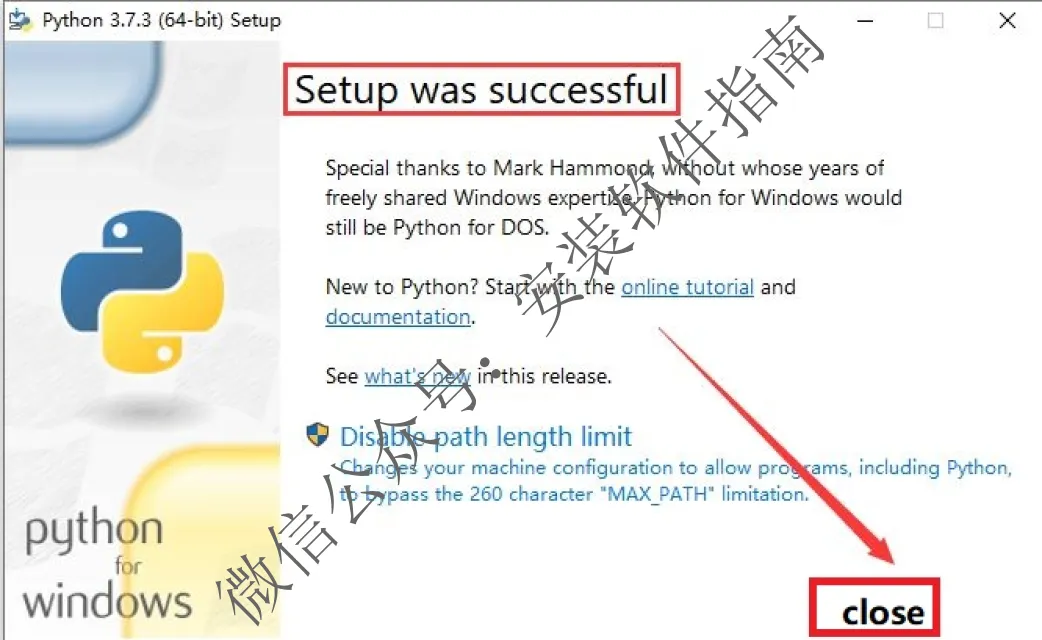 12、安装成功点close