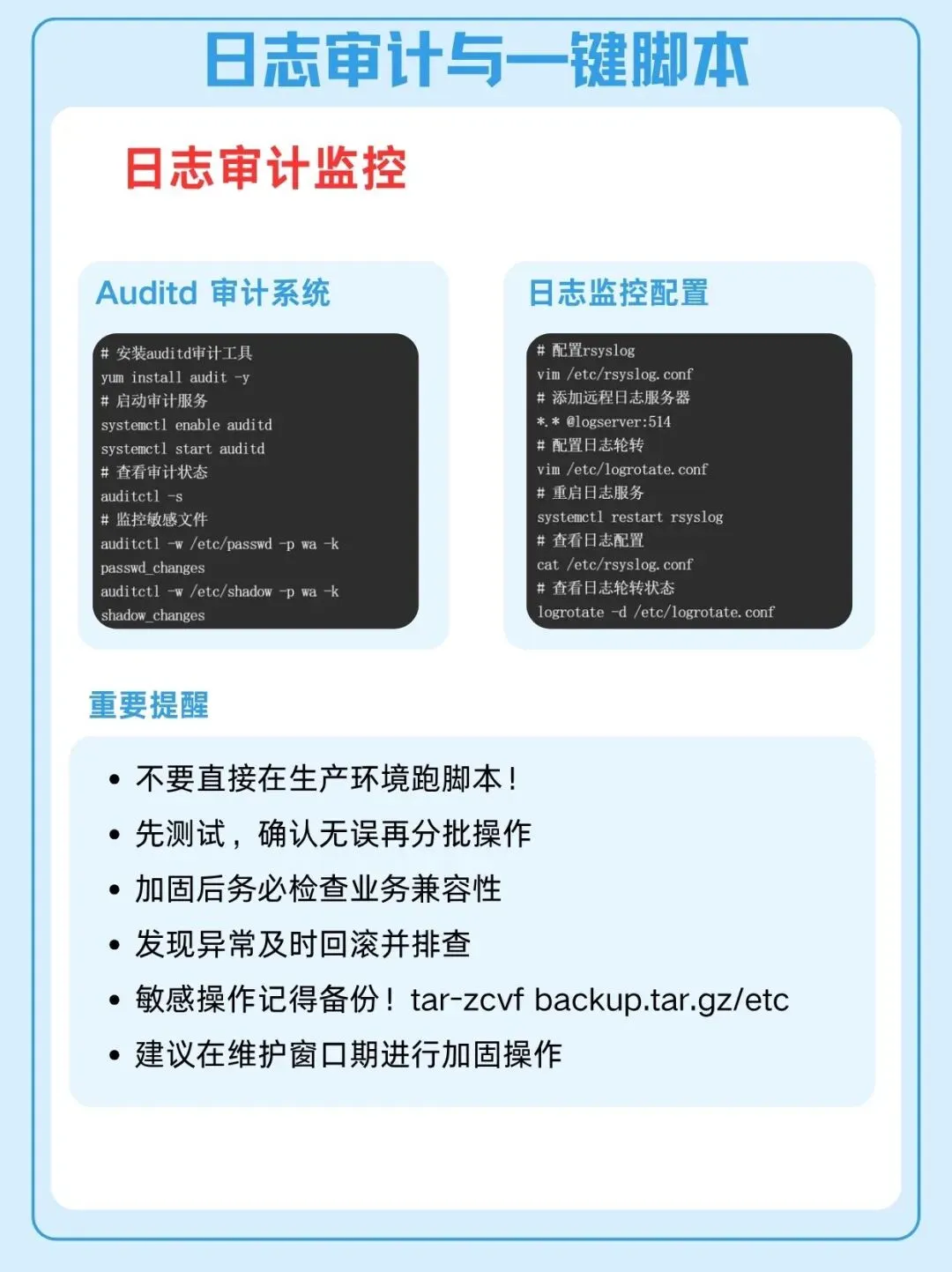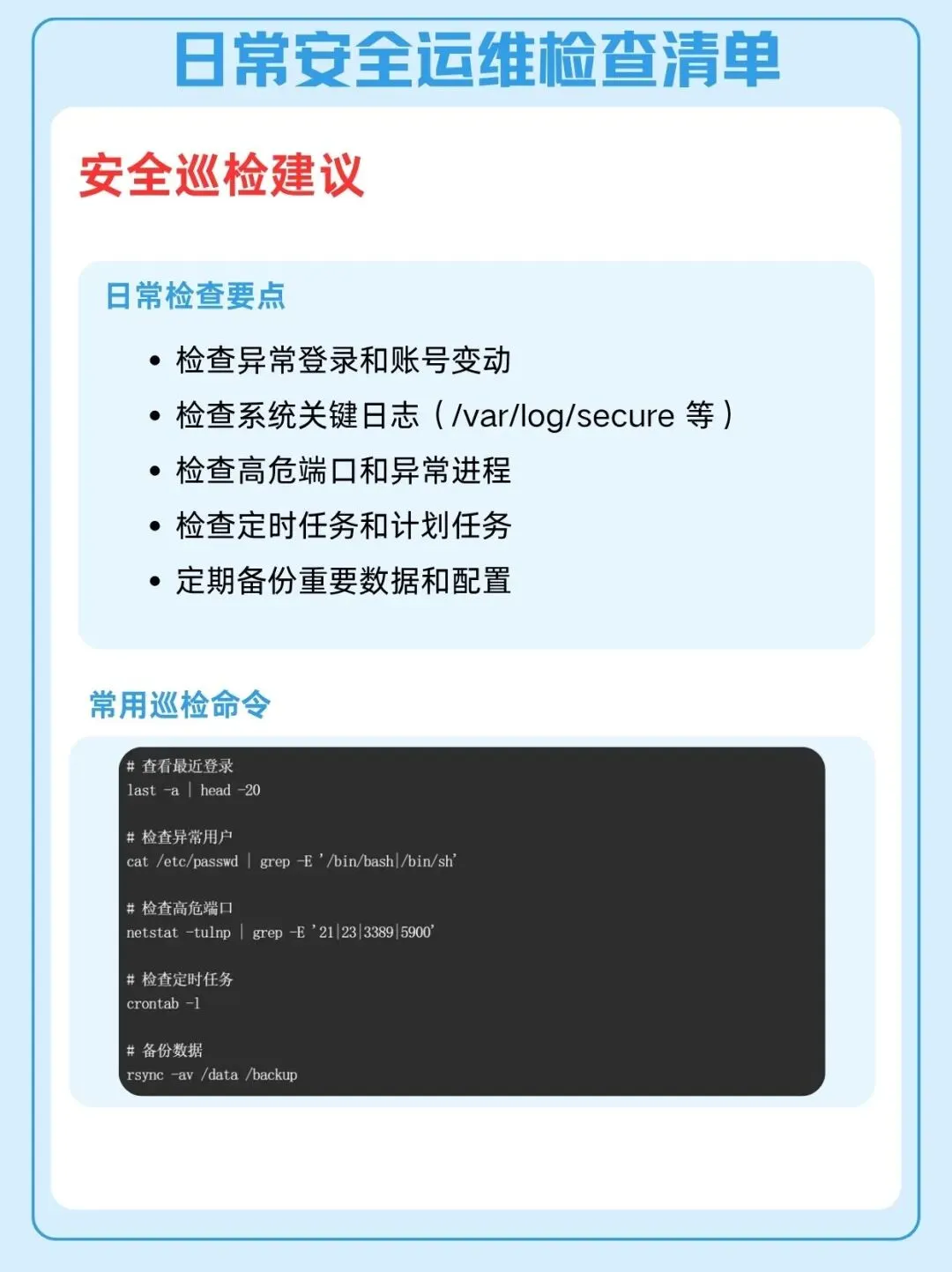 Linux运维从来不是什么一劳永逸的工作,而是需要你一直跟进持续维护的动态过程。如果你觉得这些步骤对你有用,欢迎转发分享给更多运维同行,一起筑牢服务器安全防线!