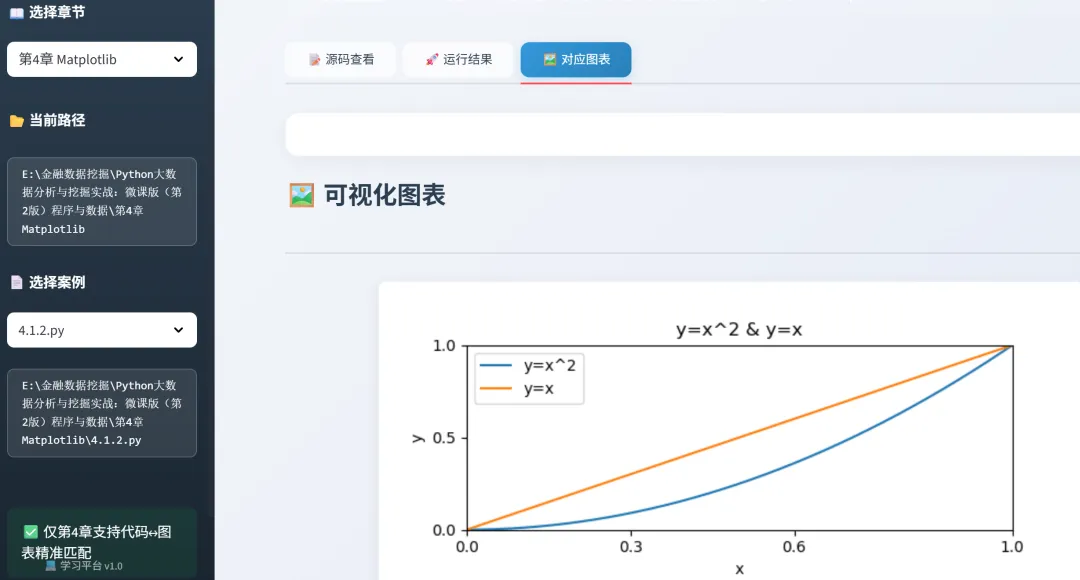 - 建立 Matplotlib 章节代码文件与图表文件的精准映射,保证选择案例后能自动匹配对应图表;