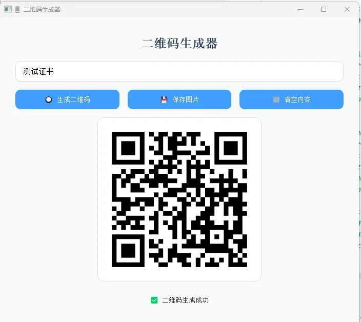 工具延续前序作品统一的简约现代UI风格,采用浅色系清爽界面,控件圆角设计、按钮高亮配色、布局层次分明,整体视觉舒适简洁,用户无需学习即可快速上手。界面从上至下分为标题区、内容输入区、功能按钮区、二维码展示区、状态提示区,结构清晰直观,操作流程简单高效。