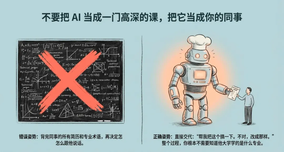 “学AI”最大的坑,就是把它当一门课去学。好像要先搞懂原理、背完术语、了解每个模型的区别,才有资格打开它跟它说话。