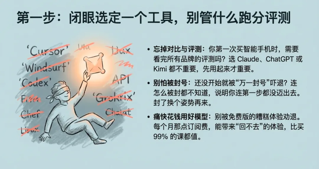 就像你第一次买智能手机,不需要先把所有品牌评测都看完。先买一个,用起来,自然就知道自己要什么了。