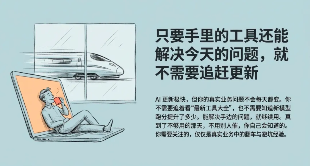 AI更新快,但你的业务问题不会每天变。你不需要知道最新模型叫什么名字、跑分提升了多少、又发布了什么新功能。
