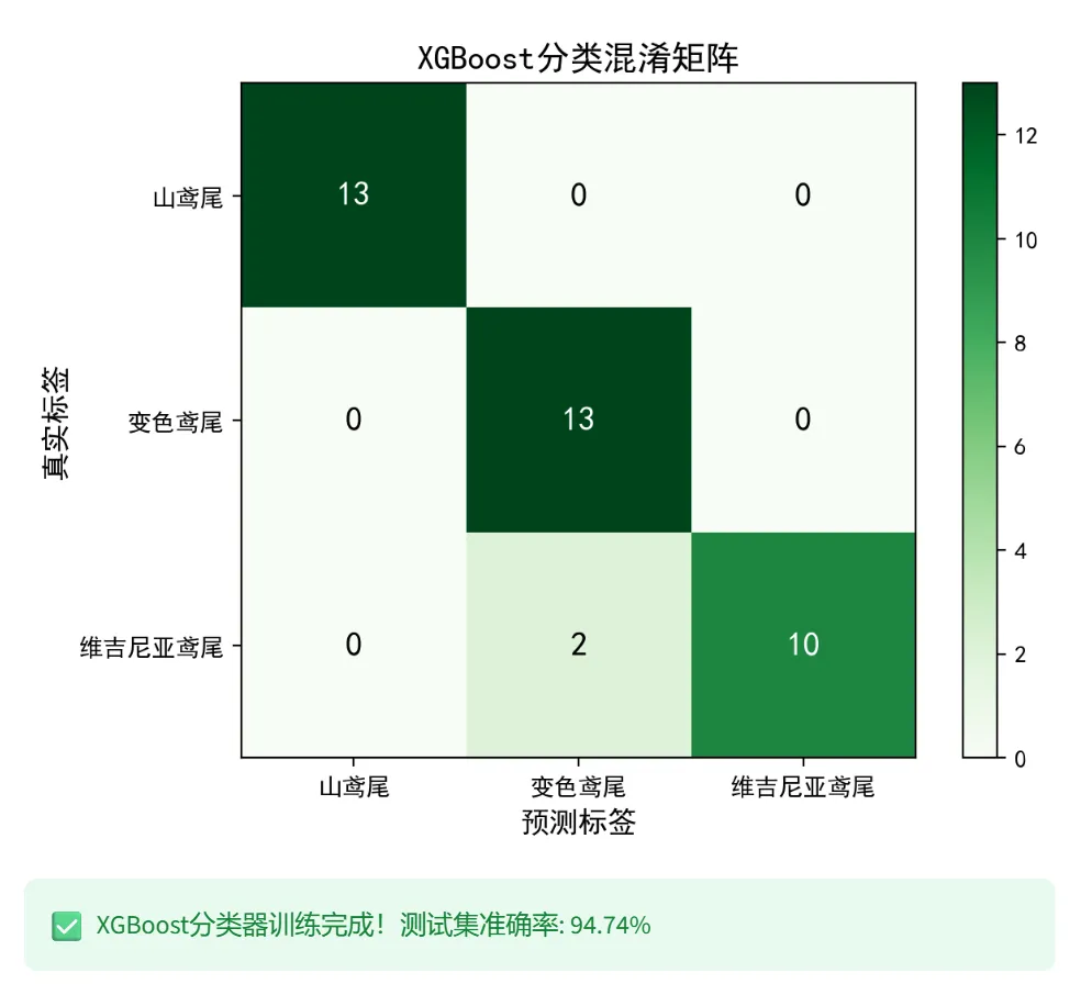 5. XGBoost:分类器:鸢尾花数据集,展示混淆矩阵和预测概率,回归器:合成数据集,展示R²和RMSE