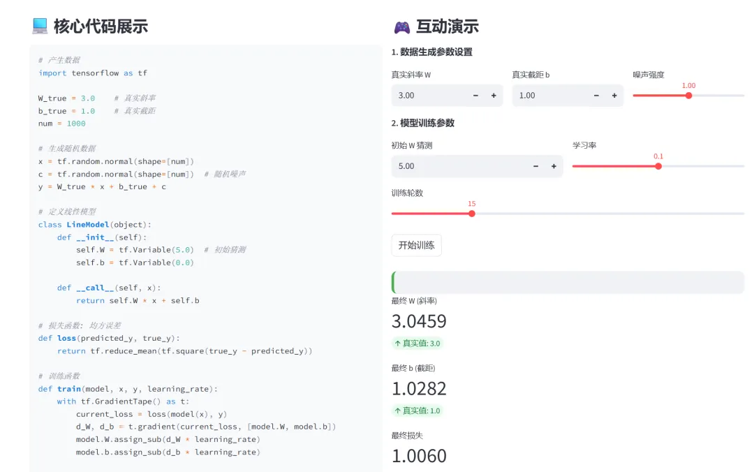(1)代码与演示并排展示,对照学习
