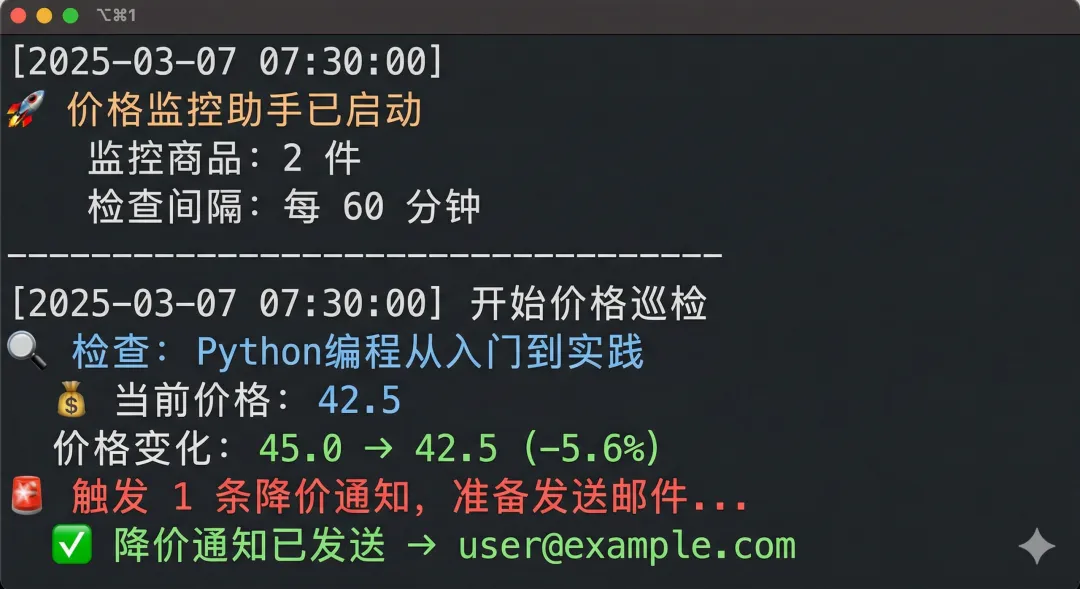print(f"\n🚨 触发 {len(alerts)} 条降价通知,准备发送邮件...")