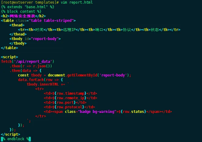 说明:这里主要是设计系统的主程序app.py、配置文件config.py等后台文件,同时也需要设计系统的前端展示文件,比如系统首页index.html、数据报表report.html、帮助中心help.html等文件。详细情况如下