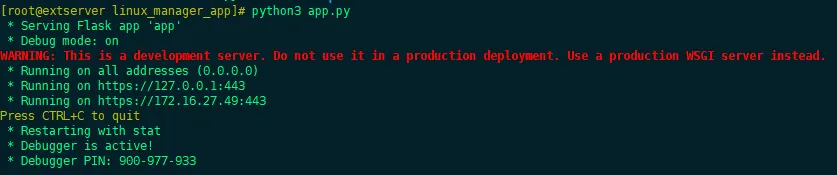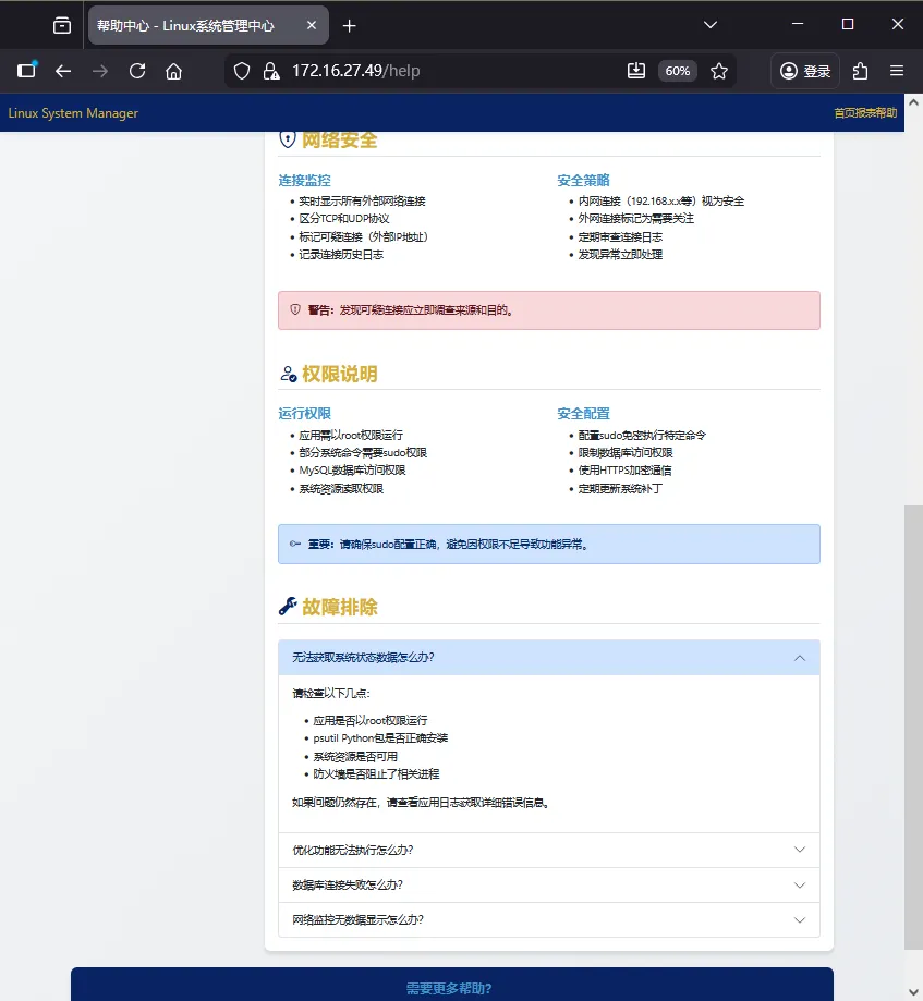 说明:本系统以 root 权限启主程序app.py,然后通过浏览器访问 https://服务器IP:443 即可使用可视化管理界面。详情如下