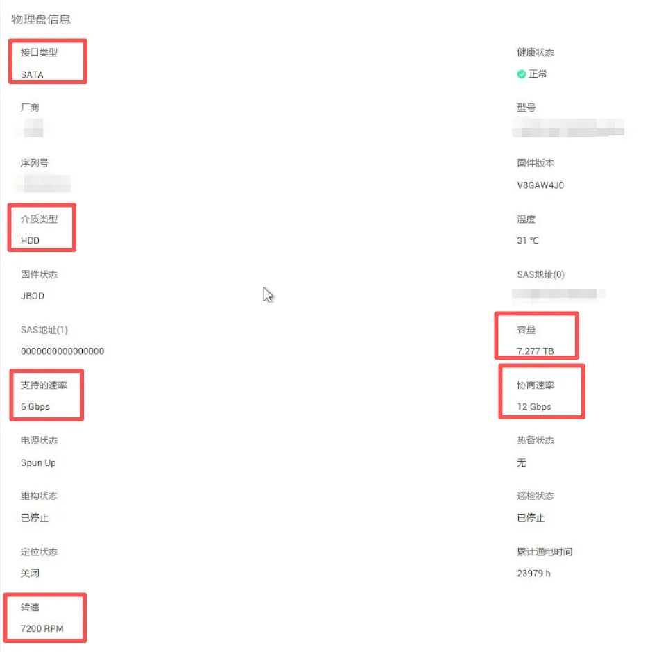 如下截图是BMC上看到的一块SATA接口的机械硬盘信息截图: