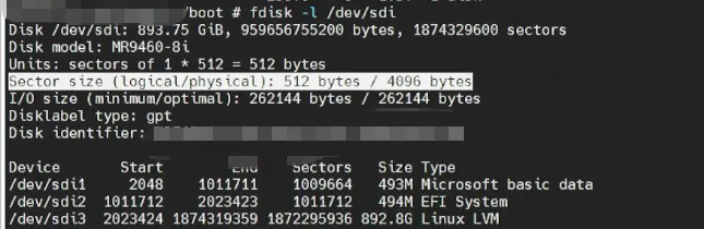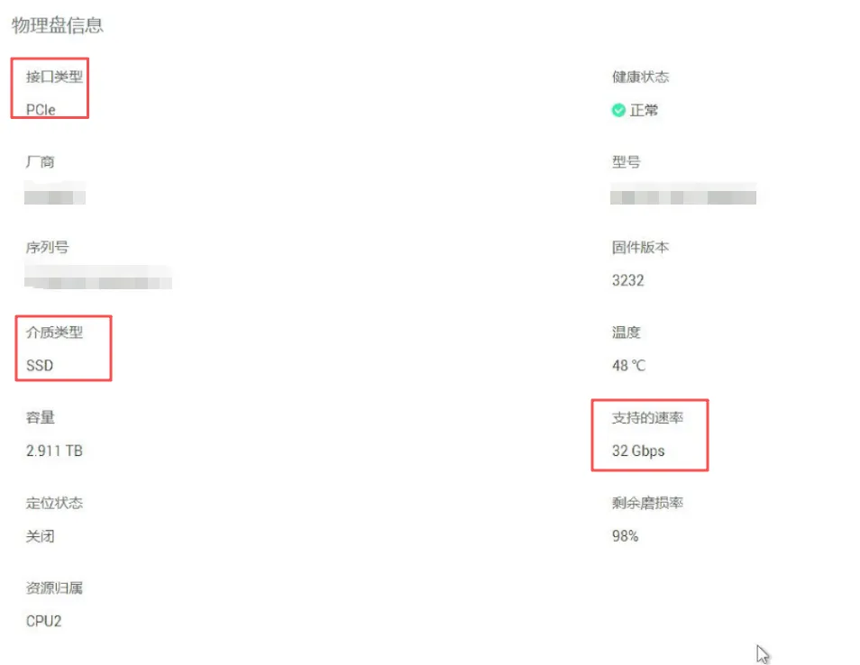 下图是一张PCIe接口的NVMe SSD的磁盘信息