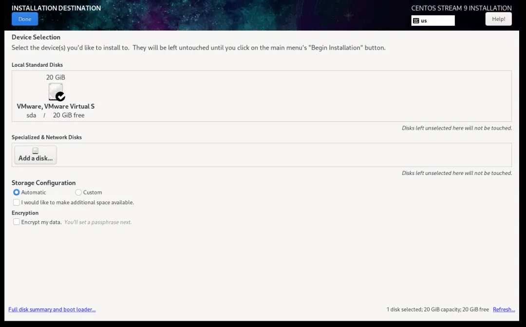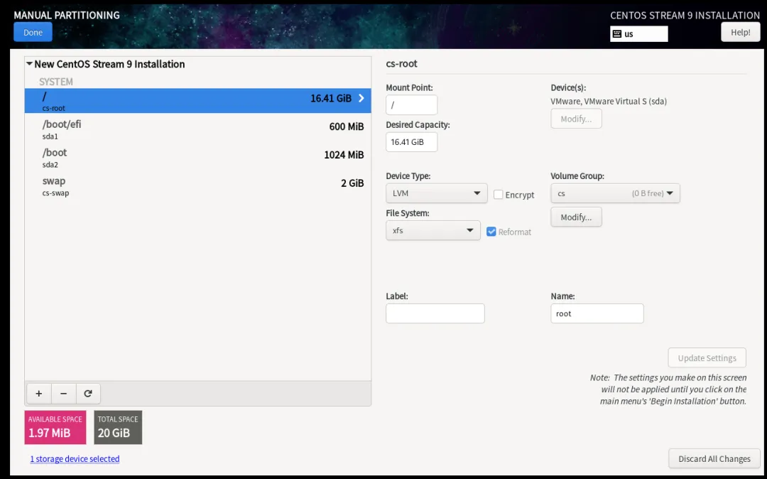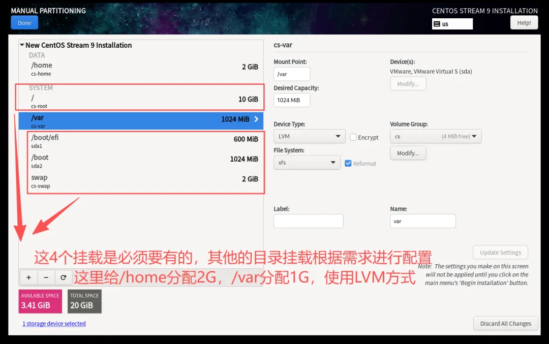 /dev/sda1 EFI 512M ← 必须(UEFI)/dev/sda2 LVM 其余空间 ← 给 LVM