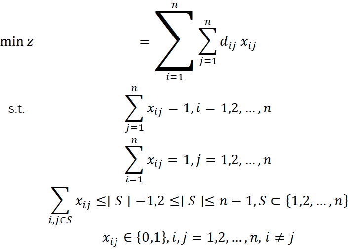 货郎要到 n个地方去卖货。已知两个地方 A_i和 A_j之间的距离为 d_ij。如何选择一条道路,使得货郎每个地方走一遍后回到起点,且所走的路径最短。