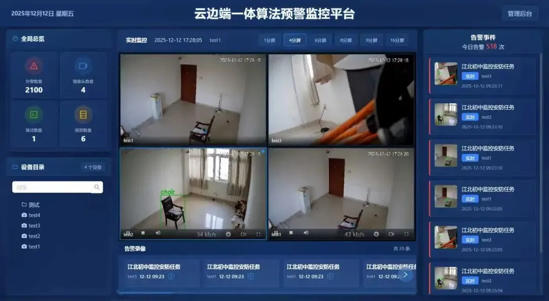 协议通吃:GB28181 + ONVIF 双协议加持,国内国外摄像头即插即用,自动发现,不用再跟SDK死磕。大模型加持:集成 QwenVL3 视觉大模型,画面不仅仅是像素,更是语义。物体识别、行为分析、异常检测,直接上升到认知层面。毫秒级响应:支持RTSP/RTMP流实时处理,多路视频并发分析,安防场景下的实时性拉满。零样本标注:这是个黑科技!依托大模型自动标注,理想状态下完全去除人工标注环节,模型迭代像开了挂一样快。