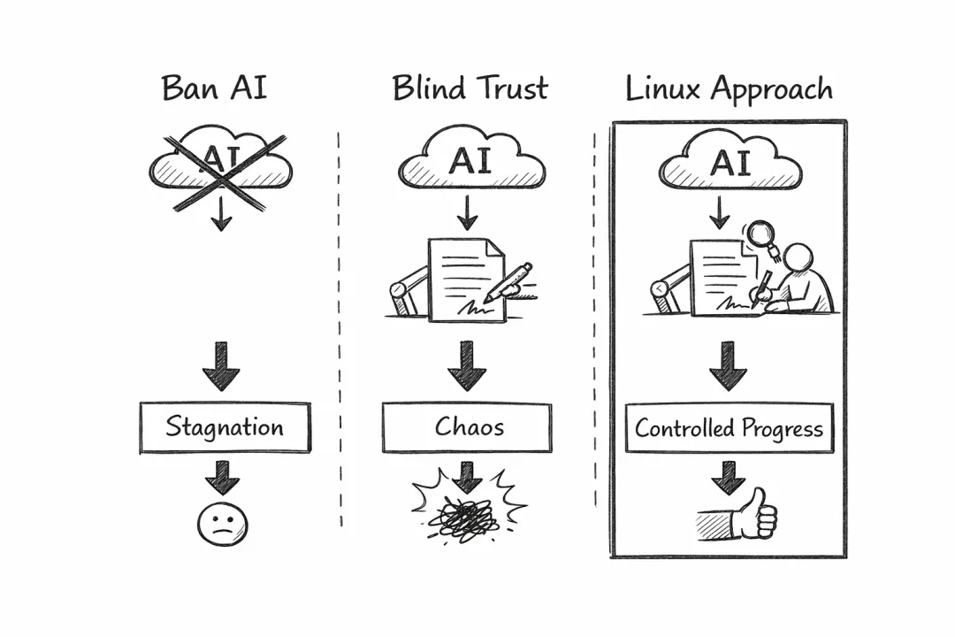 换句话说,被招安的不是 AI,本质上是“AI 作为生产力工具”这件事。社区从来没有把责任交给模型,责任依旧牢牢钉在人身上。如果你把问题改成“Linux 能不能接受 AI 辅助生成的文档、补丁说明、甚至代码”,答案其实已经很明确了: