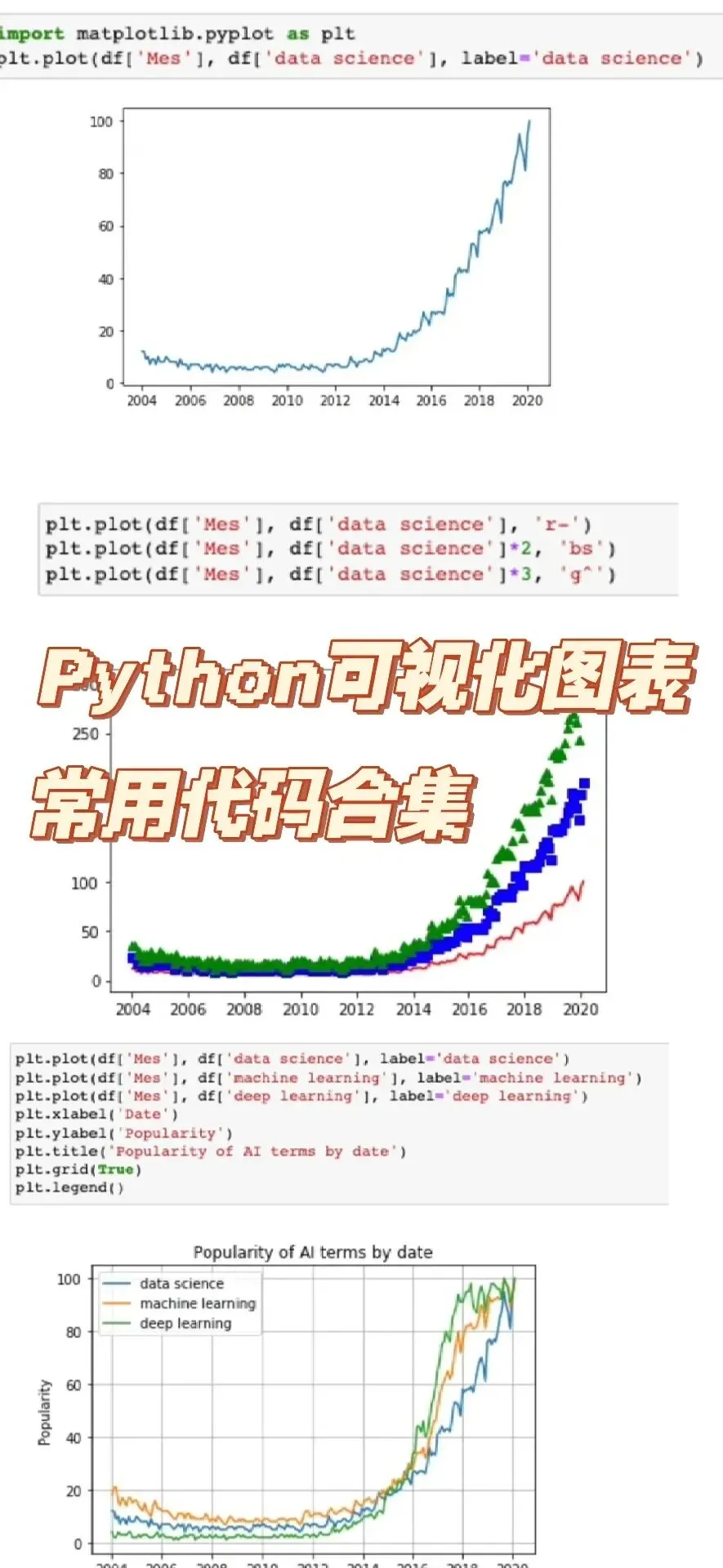 Matplotlib是一个Python2D绘图库,可用于Python脚本、Python和IPython Shell、Jupyter笔记本,Web应用程序服务器,只需要几行代码就可以生成图表、直方图、密度图、条形图、误差图、散点图等。