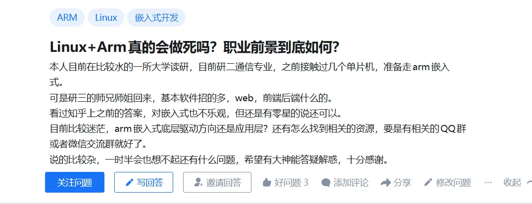 最近后台收到很多小伙伴私信,都在问搞Linux arm开发是不是在自掘坟墓,这个问题我憋了很久,今天必须掰扯清楚。