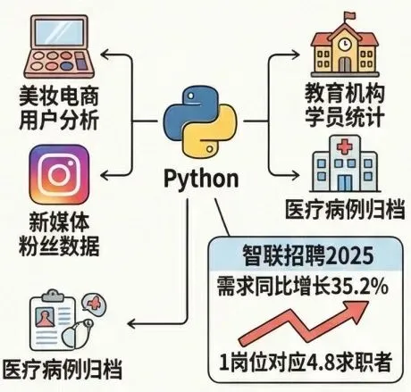 就业选择多,渗透20+行业,供不应求。
