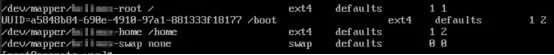 /dev/sda1、/dev/vdb1 #裸设备挂载UUID=xxx-xxx-xxx-xxx-xxx #UUID挂载,一般/boot路径使用此挂载方式/dev/mapper/ #逻辑卷 逻辑卷挂载