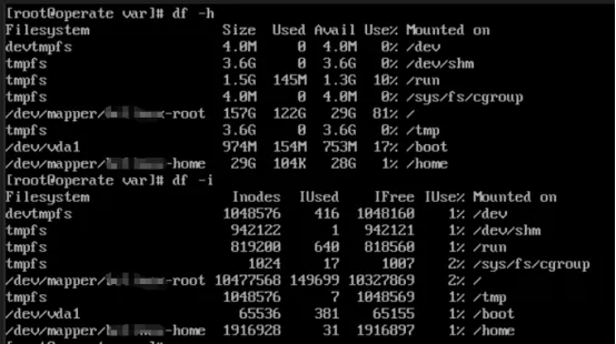 删除了文件,但句柄没释放,空间不还回磁盘。主要原因是Linux文件有2种属性,一个是目录项(也就是文件名称)、一个是索引节点(inode)。执行rm命令只是删除了目录项,但是inode还在。所以,df -h空间不释放,而执行du -sh看到的inode已经变小。