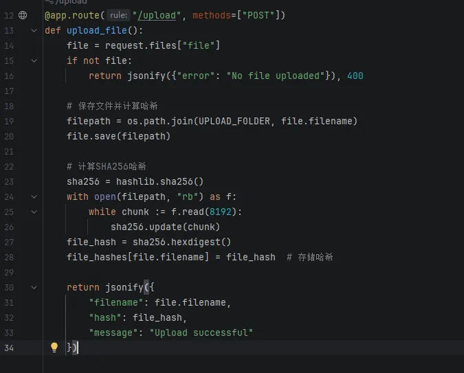 • 后端:Flask路由处理上传、下载、哈希计算