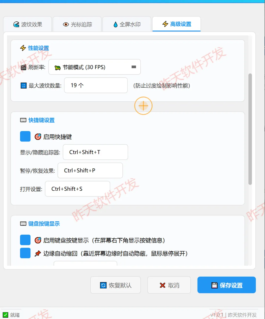 在日常办公、教学演示、远程协作或录屏制作中,你是否常常遇到鼠标光标难以快速定位、点击操作不够醒目、屏幕内容需要安全防护等问题?这款由昨天软件精心打造的鼠标点击动画效果工具,基于PyQt5深度开发,集炫酷波纹特效、精准光标追踪、全屏水印保护于一体,完美适配各类使用场景,不仅让鼠标操作直观可见,更兼顾实用性与美观度,全面提升你的使用体验。