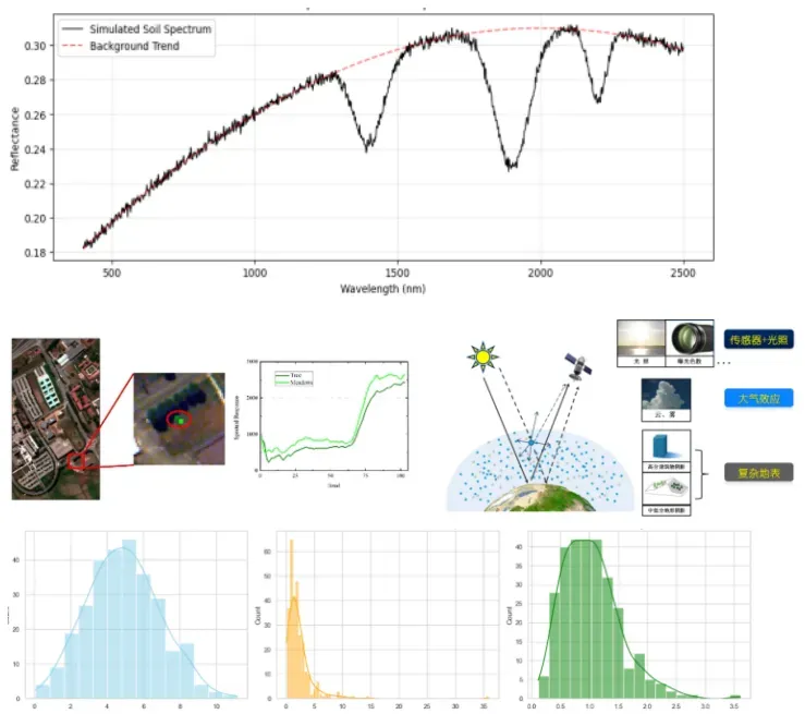 1.植被光谱机理:叶绿素、水分、纤维素等生化组分的吸收特征与光谱响应。