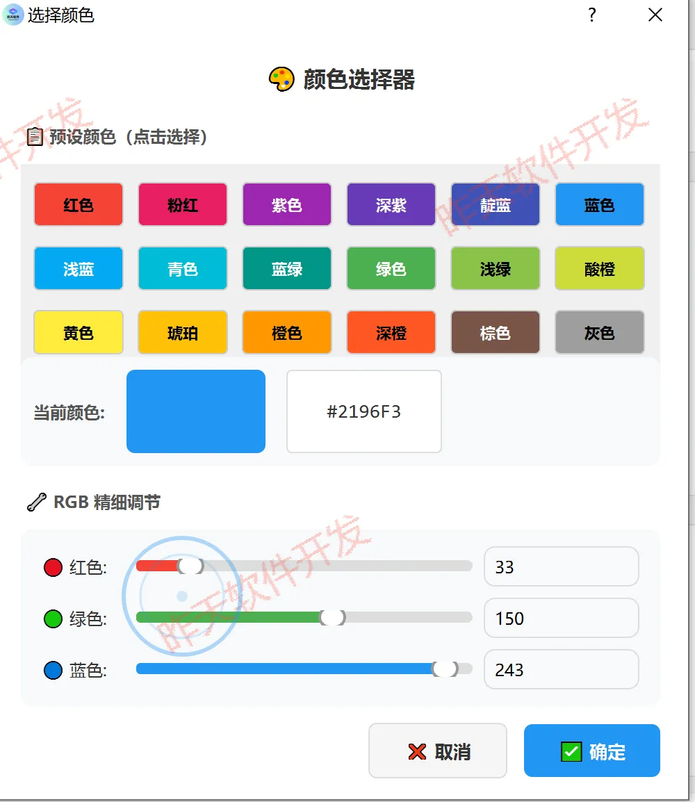 【中文可视化颜色选择器】搭载专属中文颜色选择器,预设24种日常常用颜色,无需记忆色号,点选即可应用,同时支持RGB数值精细调节,精准匹配心仪色彩,操作简单易懂。