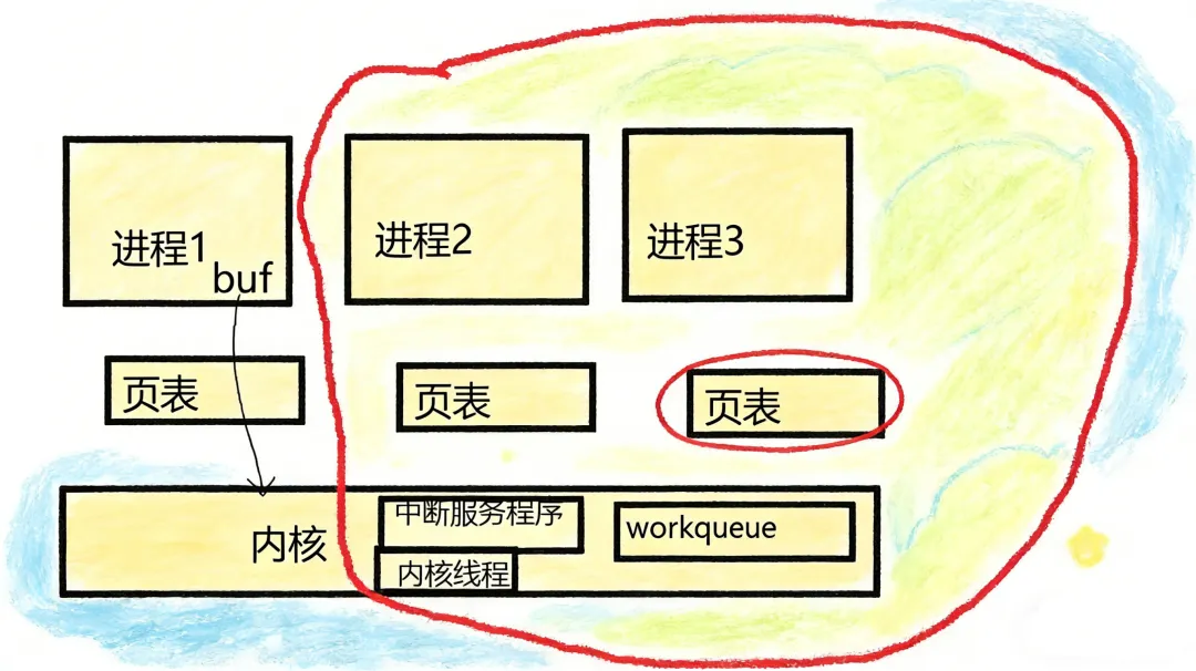 用户态传入的 buffer 地址本质上是虚拟地址,这个地址的有效性完全依赖于当前进程的页表。每个进程都有自己专属的页表,它就像是一本地址翻译字典,负责将虚拟地址映射到实际的物理地址。当我们处于用户态时,进程 A 中的某个函数向内核传递了一个 buffer 地址,此时这个地址在进程 A 的页表中能够准确地找到对应的物理内存。但一旦发生进程切换 ,情况就会变得截然不同。