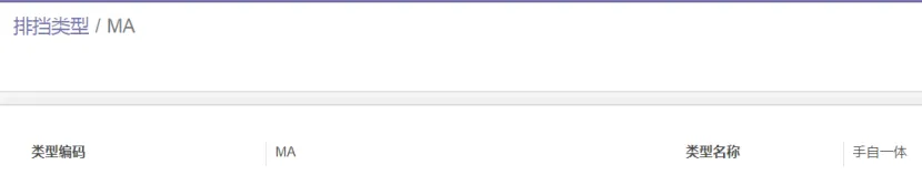 目前市面汽车排档类型有M、A、MA,因为有自驾车,所以有N类型,这样可以让排档类型在汽车和预约模块都可使用。另外,因为排档类型一经录入,不需改变,所以我们将在系统初始化的时候就载入这些默认数据,并且让使用者只能看,不能修改。排档编码 | 排档类型 |