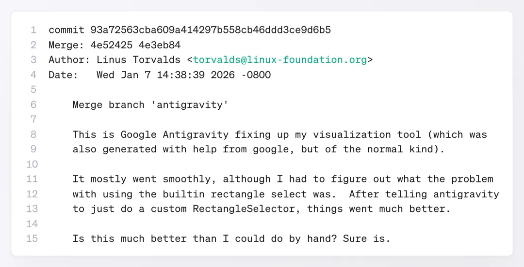 不过他也强调,这种用法只适用于个人项目;在 Linux 内核这种基础设施级别的工程里,标准必须更严格。