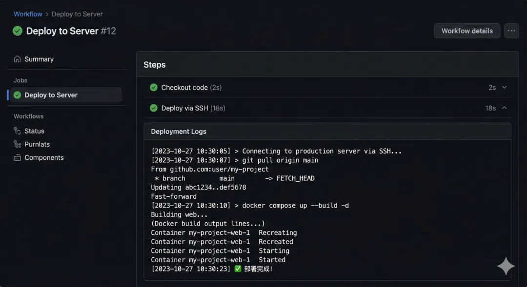 每次改完代码,手动 SSH 上去 git pull 再重启,太繁琐了。用 GitHub Actions 实现自动化:推送代码到 main 分支,自动部署到服务器。