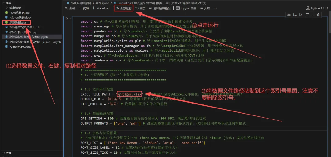 选择下载好的代码文件,复制粘贴您的数据文件,点击运行即可。