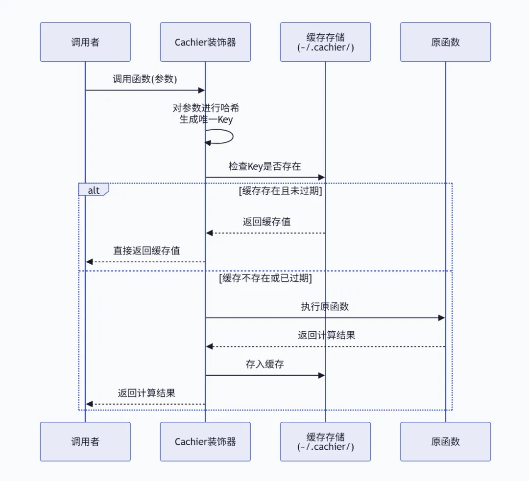 一句话总结:Cachier 让你的函数拥有“过目不忘”的能力——相同的输入直接返回记忆中的结果,而且这个记忆可以持久保存、自动过期。