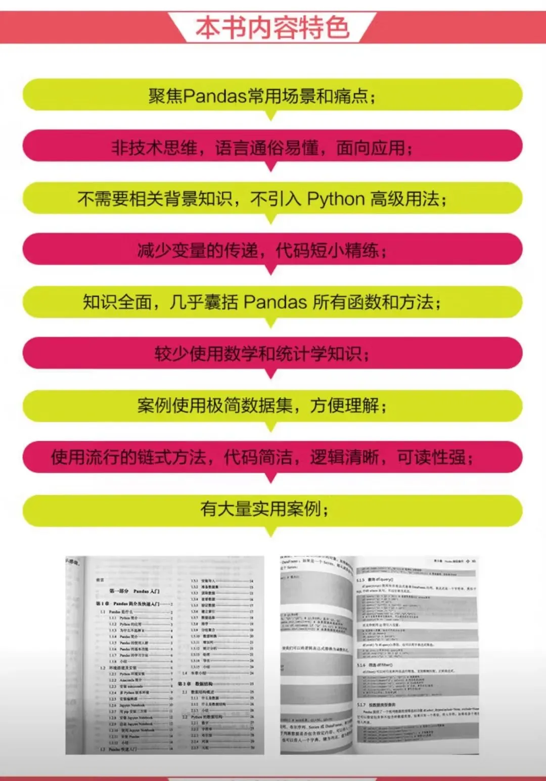 详细讲解了Pandas读取与输出数据、索引操作、数据类型转换、查询筛选、统计计算、排序、位移、数据修改、数据选代、函数应用等内容。