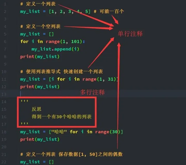 例如:name = "小明" # 也可以写在语句后面
