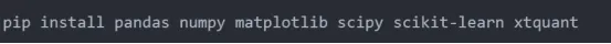 咱们这里用的行情数据源是xtquant + miniQMT。 后续示例里会用到一些常见的Python 库: pandas, numpy, matplotlib,进阶部分还会涉及scipy, sklearn。在实际运行代码之前,记得先把环境配置好: