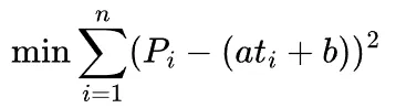 使得所有股价点到直线的垂直距离平方和最小,即最小二乘法: