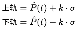 这里的k是调节参数,通常取2,表示大约 95% 的价格会落在通道内。